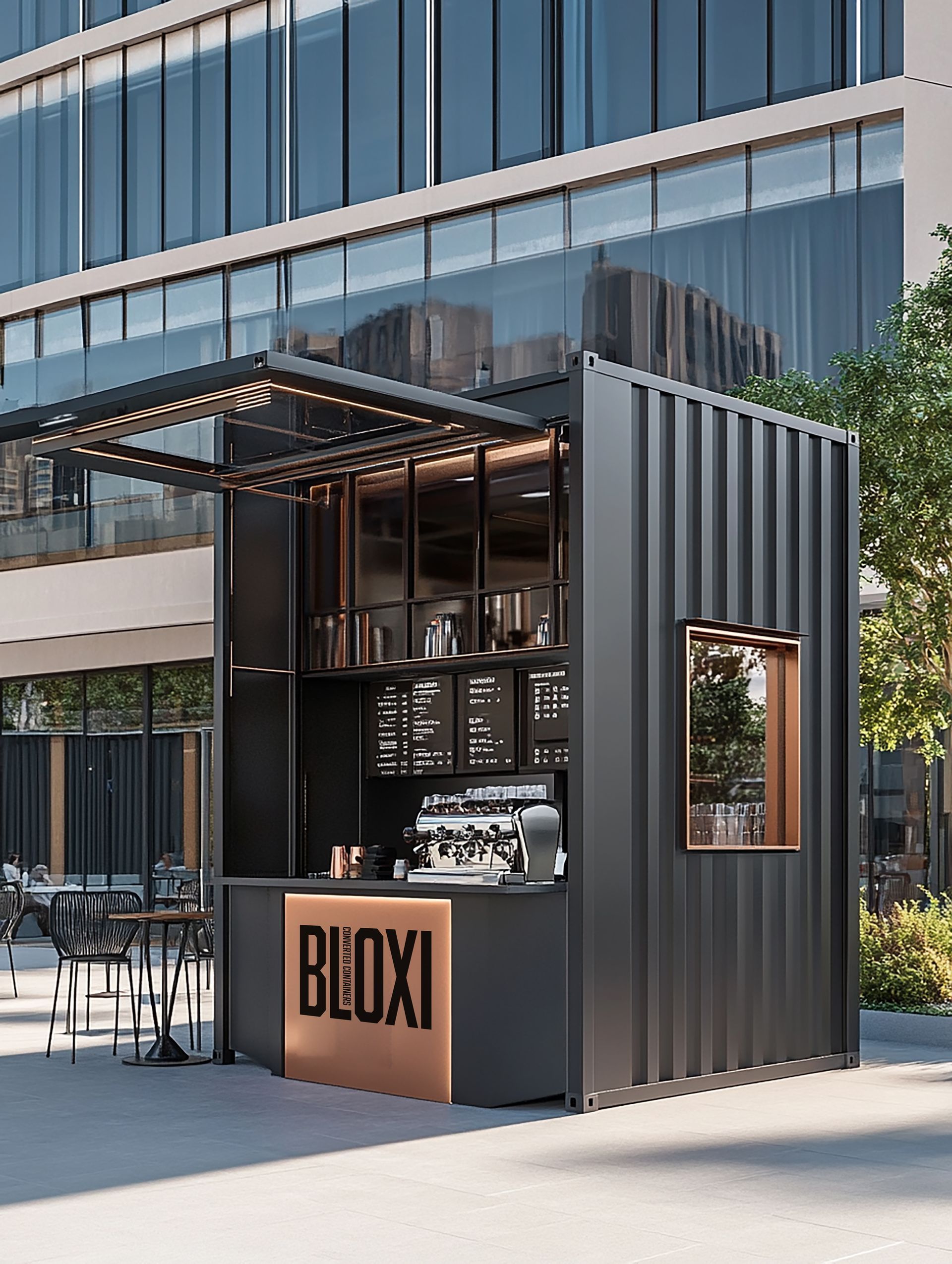Shipping containers offer an ideal blend of mobility, durability, and design flexibility. At BLOXI, we can craft unique setups that reflect your brand’s identity and enhance any public or retail environment. Perfect for a variety of uses—luxury kiosks, pop-up shops, open-air bars, and refined refreshment booths—our container-based solutions provide a captivating presence that draws in customers while blending naturally into the surrounding environment.